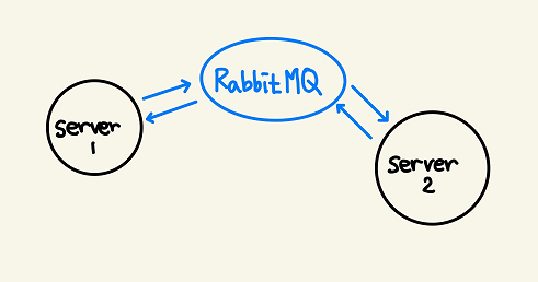 서버1이 서버2에게 메세지를 보낼 때 때 rabbitMQ를 통해 메세지를 전송한다.