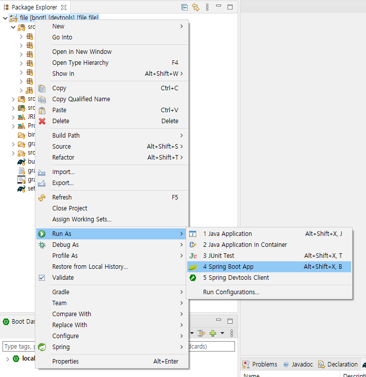 프로젝트 > 우클릭 > Run As > Spring Boot App 선택하고 잘 실행되는지 확인하면 된다 !