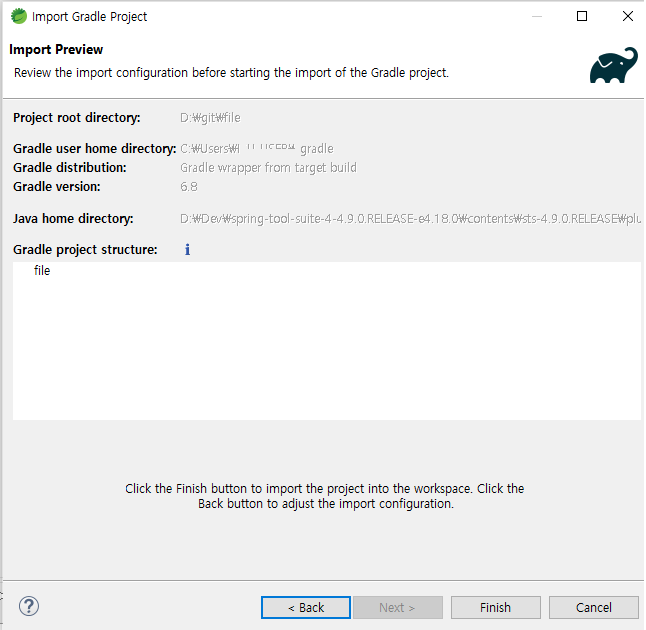 STS(Eclipse)의 import projects > Gradle > Existing Gradle Project를 선택한다!