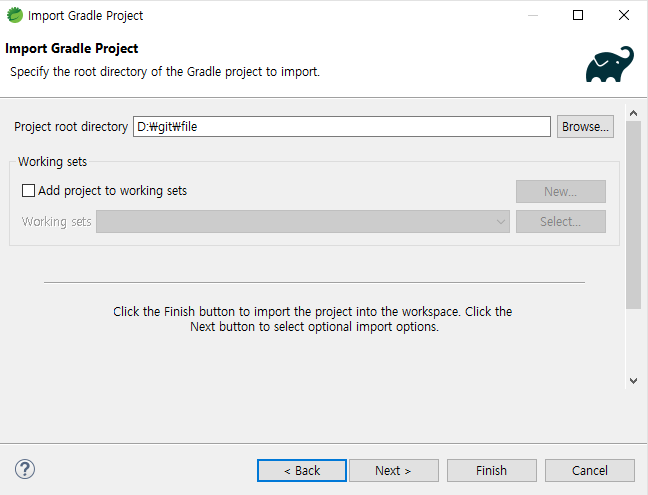 project root directory에서 import할 프로젝트 경로를 선택한다.